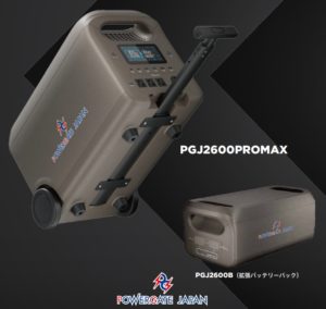 PGJ2600PROMAXは2500Whの容量を持つコンパクトモデルで、初めて蓄電池を導入する企業や、電力需要が比較的小さい事業所に最適な製品です。