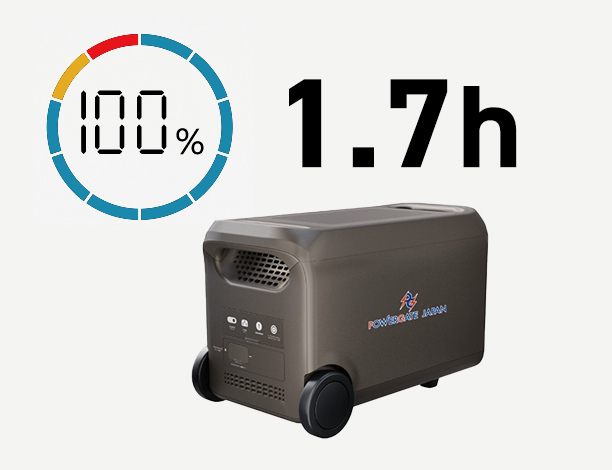 1.7時間で満充電に。AC1500W急速充電アダプター内蔵。